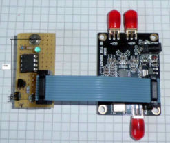 Das Programm lädt über ein einfaches Interface mit 3 Leitungen die sechs 32 Bit Register des ADF4351 mit den oben ermittelten Registerwerten. Dabei muss die Reihenfolge R5, R4, R3, R2, R1, R0 eingehalten werden. Nach dem Laden wird der Ausgang LD mehrfach abgefragt, ob ein LockDetect erfolgt. Wenn nicht liegt ein Fehler vor und das Programm stoppt in einer Endlosschleife mit blinkender LED.