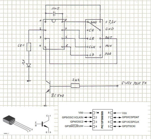 Wer die hier verwendeten Frequenzen verwenden will und am Programm nichts ändern will kann sich auch für die Programmierung des PIC das Hexfile herunterladen.